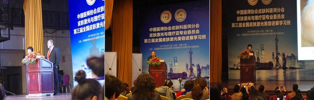由中国医师协会皮肤科医师分会主办, 上海华山医院承办的第三届CDA皮肤激光亚专业全国继续教育学习班于2013年3月13日在上海宾馆拉开帷幕.会长郑志忠、王宝玺出席并担任了会议专场主持,会议围绕皮肤激光的专业基础知识,临床治疗方案的选择,不同美容激光设备治疗展示逐步展开。