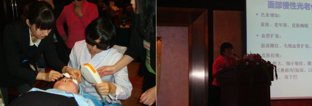 李教授除了专题演讲,还现场进行了DPL精准550治疗雀斑、DPL精准500治疗红血丝、NIR红外光波治疗面部松弛暗黄的操作演示,即刻明显效果不禁令在场听众纷纷发问,寻求日常治疗过程中疑难问题的答案。
