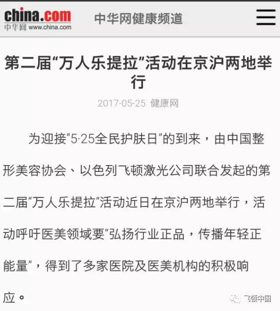 光明网、中华网、新浪网、搜狐网、千龙网、东方网等央媒及门户网站全力聚焦飞顿“万人乐提拉”医美盛典!